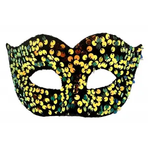 Altın Renk Arkadan Lastikli Pul Payet İşlemeli Balo After Parti Maskesi