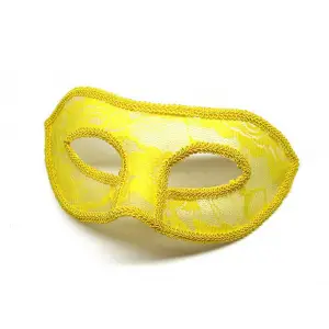 Dantel Tül Malzemeden İmal Sarı Renk Balo Parti Maskesi Venedik