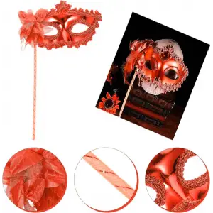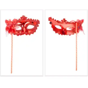 Kırmızı Işıltılı Tutmalı Fotoğraf Çekimi Maskesi 18x29 Cm