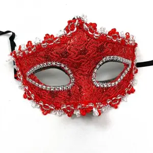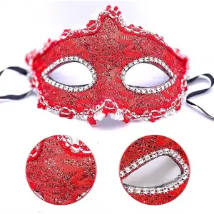 Kırmızı Renk Gözler Kristal Taşlı Dantelli Parti Maskesi 11x17 Cm