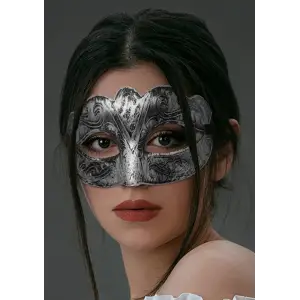 Maskeli Balo Antik Gri Gümüş Eskitilmiş Maske Balo Venedik