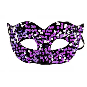 Mor Renk Arkadan Lastikli Pul Payet İşlemeli Balo After Parti Maskesi