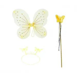 Sarı Kelebek Erkek-kız Seti – 50 Cm Kelebek Kanadı, Taç Ve Asa