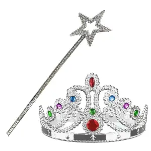 Gümüş Renk Metalize Prenses Tacı Ve Metalize Prenses Yıldız Asası