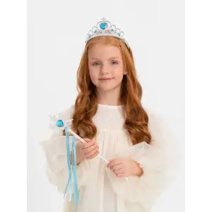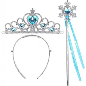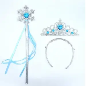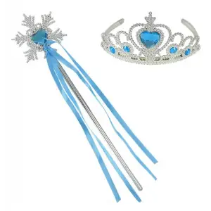 Mavi Taşlı Elsa Çocuk Taç Ve Kar Temalı Kurdeleli Elsa Asası Sopası
