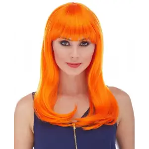 Turuncu Renk Uzun Düz Parti Peruğu