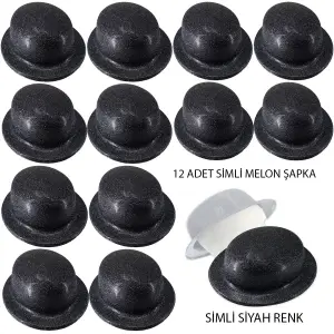 Siyah Renk Simli Melon Yuvarlak Parti Şapkası 12 Adet