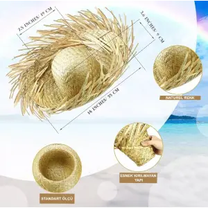 Tropikal Parti Naturel Hasır Hawaii Şapkası 13x36 Cm