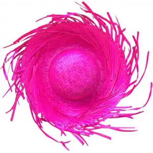 Tropikal Parti Pembe Fuşya Hasır Hawaii Şapkası 13x36 Cm