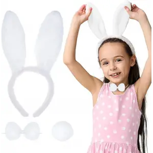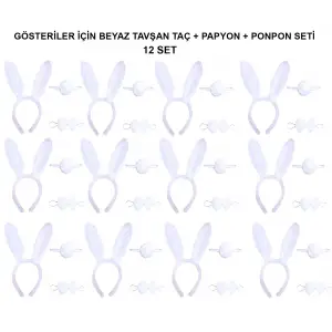Beyaz Tavşan Kostüm Seti – Taç, Papyon, Kuyruk (12’li Paket)