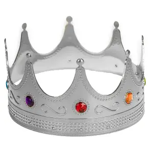 Gümüş Renk Yetişkin Çocuk Uyumlu Kral Tacı Kraliyet Tacı 60 Cm
