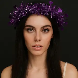 Kalp Püsküllü Gece Parıltısı 3 Modlu Led39li Işıklı Taç Mor Renk