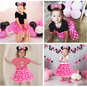 Pembe Fiyonklu Minnie Mouse Tacı Mini Kulak