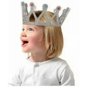 Gümüş Renk Kumaş Malzemeden İmal Çocuk Kral Tacı 57 Cm