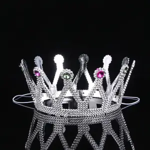 Led Işıklı Rengarenk Yanan 3 Fonksiyonlu Otrişli Parti Tacı Pembe Renk 12x12 Cm
