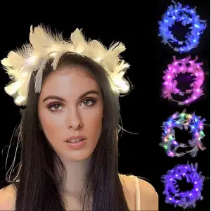 Led Işıklı Rengarenk Yanan 3 Fonksiyonlu Otrişli Parti Tacı Beyaz Renk 12x12 Cm