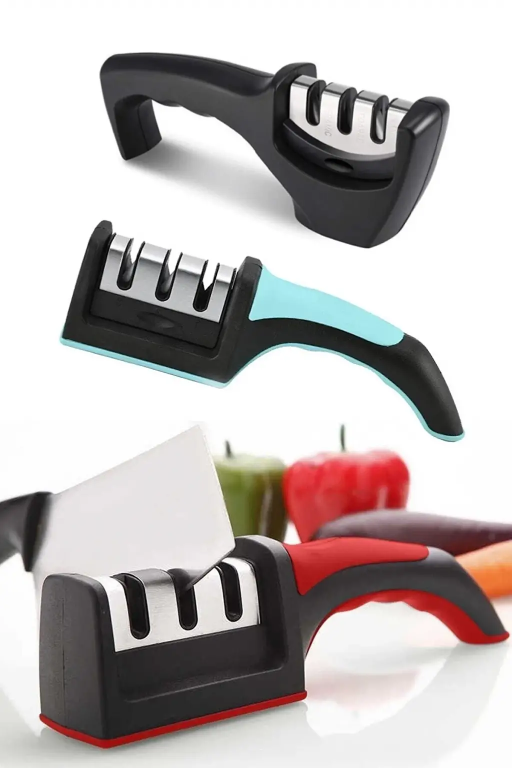 • Profesyonel Bıçak Bileyici 3 Açılı Elmas Seramik Tungsten Çelik El Bıçakları Bileme
