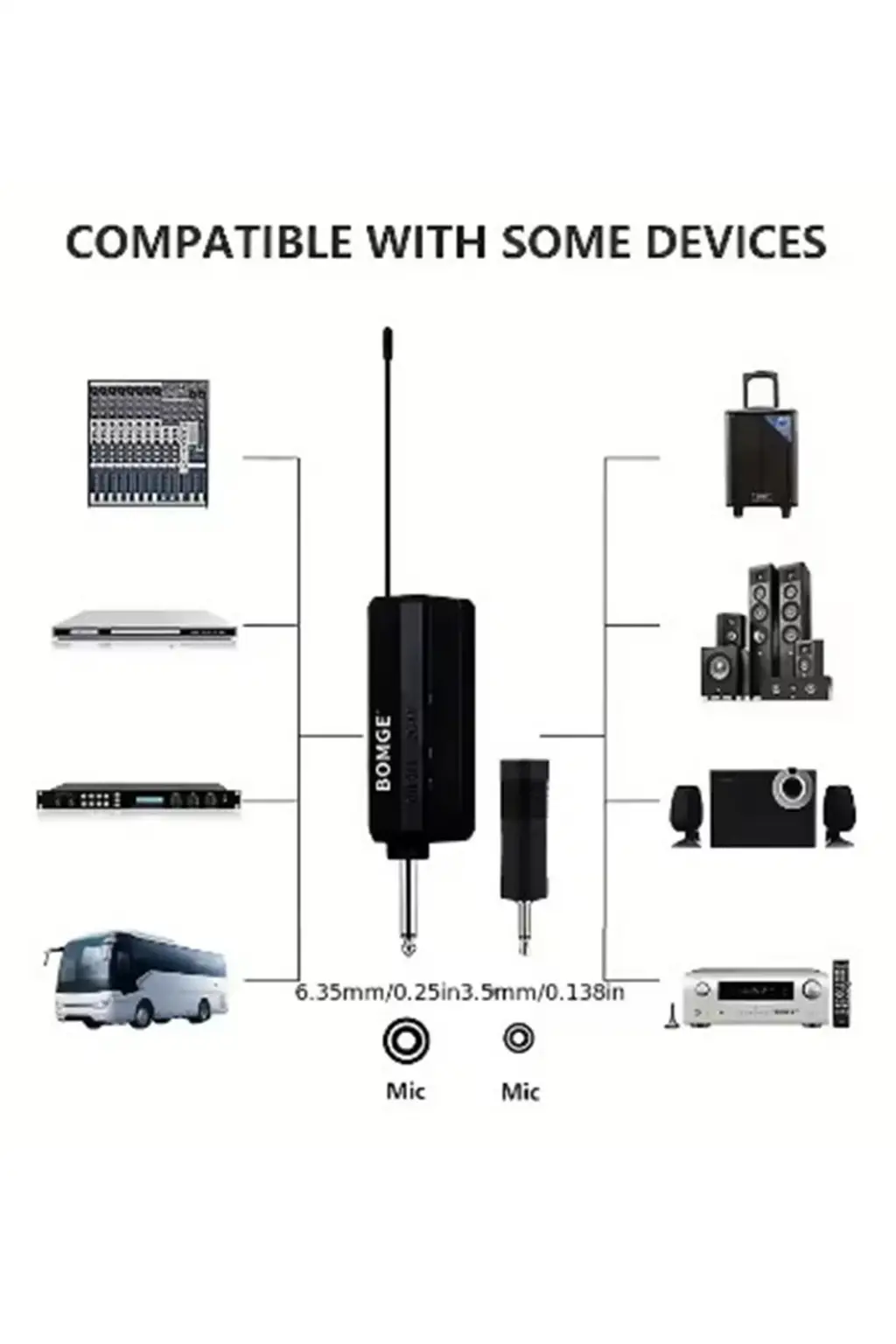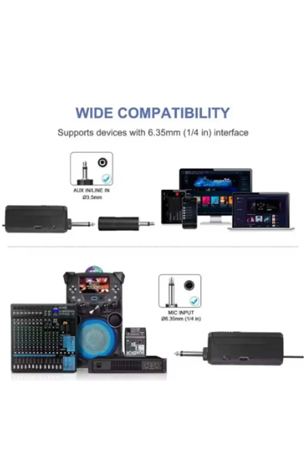 ●Çok çeşitli cihazlarla uyumlu: Mikrofon, 6,35 mm (1/4") veya 3,5 mm (1/8") MIC girişine sahip cihazlarla çalışacak şekilde tasarlanmıştır.Karaoke makineleri, mikserler, müzik kutuları, ses amplifikatörleri, PA sistemleri, elektrikli hoparlörler, ses amplifikatörleri, kamyon hoparlör sistemleri için uygundur