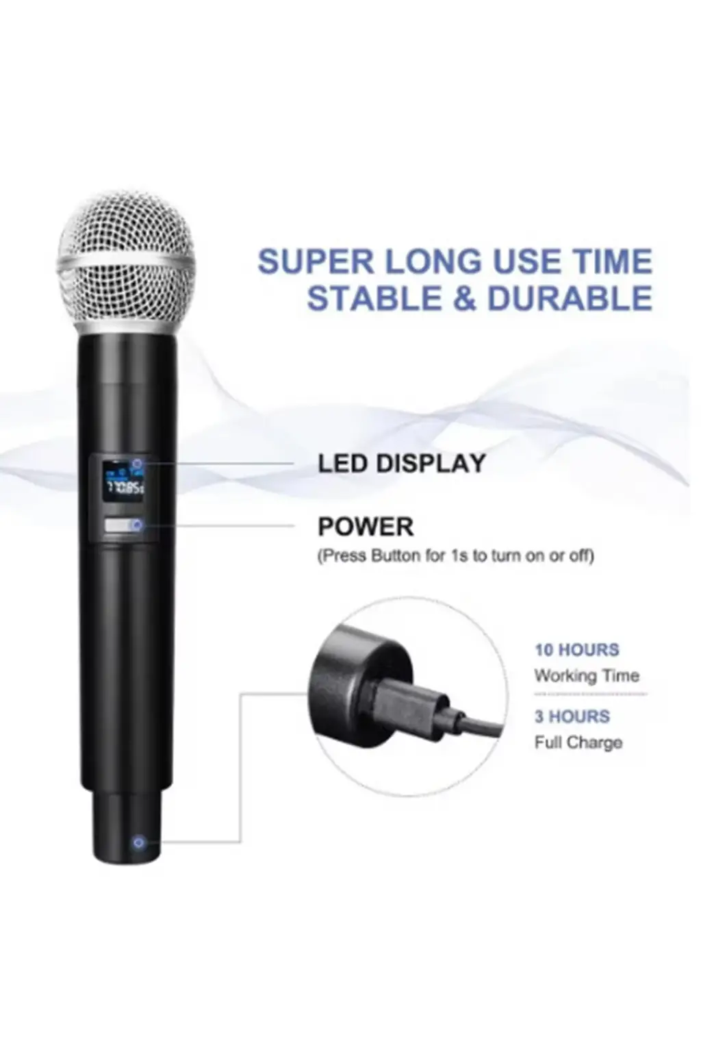 ●Ekstra uzun kullanım süresi için 1200 mAh pil: 3 şarj edilebilir değiştirilebilir 18650 pil, pil satın almanıza gerek yok, 3 saat içinde tam şarjla 8 saat çalışma.Mikrofon ekranı pil seviyesini ve sinyal gücünü gerçek zamanlı olarak gösterir.Mikrofon ve alıcı, yüksek darbe direnci, daha hafif ağırlık ve daha yüksek aşınma direnci için profesyonelce düşme testine tabi tutulur.