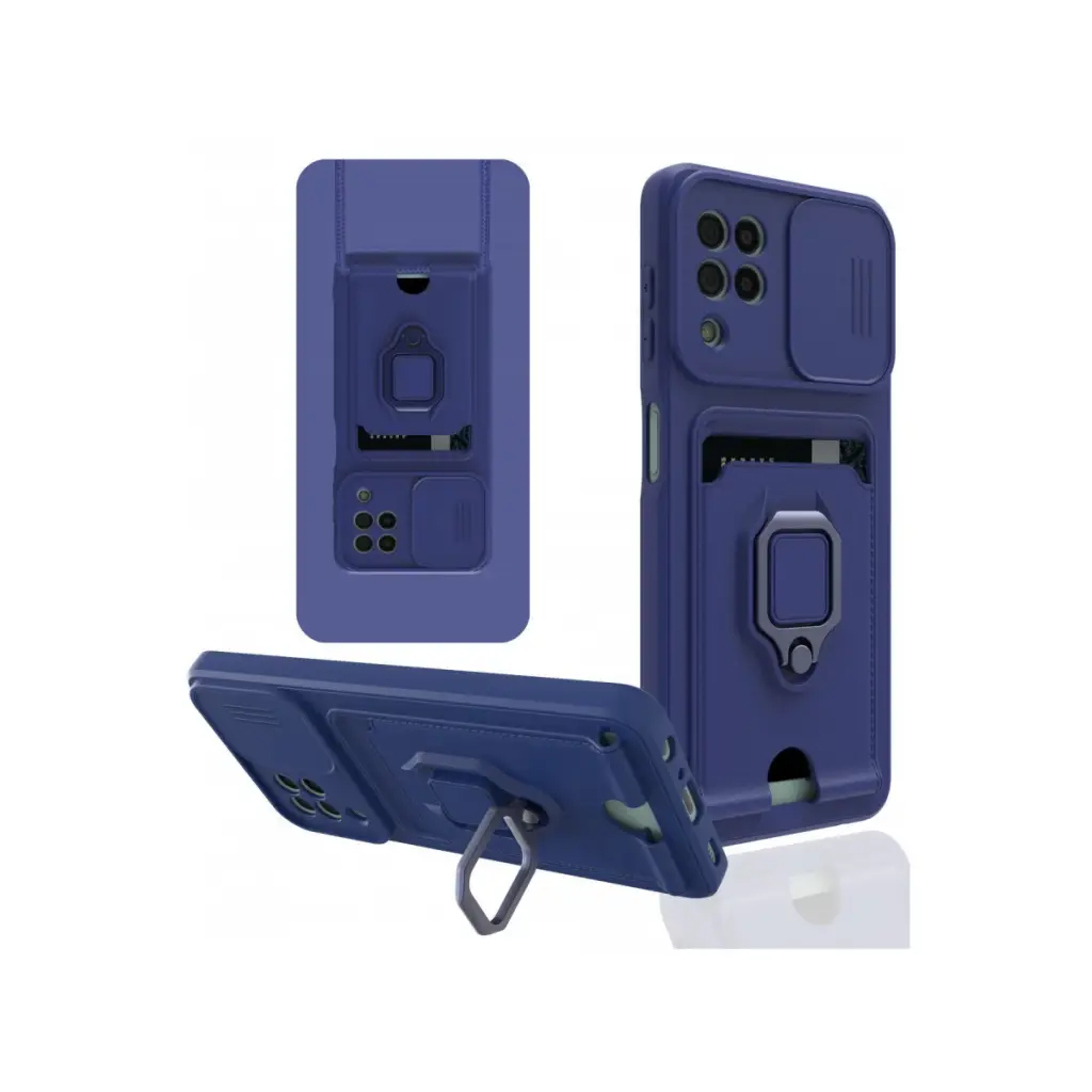 Samsung Galaxy A22 Kılıf Zuma Kartvizitli Yüzüklü Silikon - Lacivert