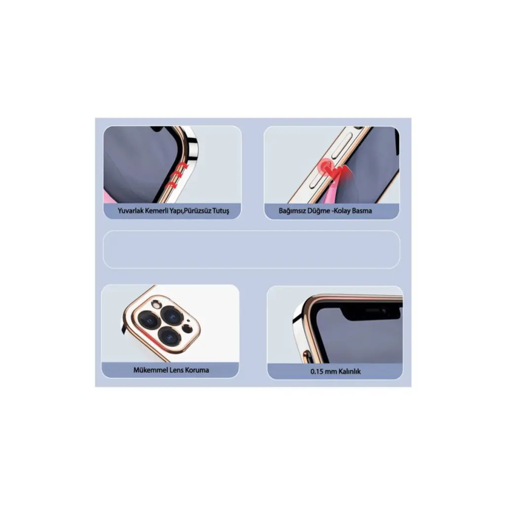 Gold detaylarla zenginleştirilmiş kenar hatları cihazınıza zarif bir dokunuş katar