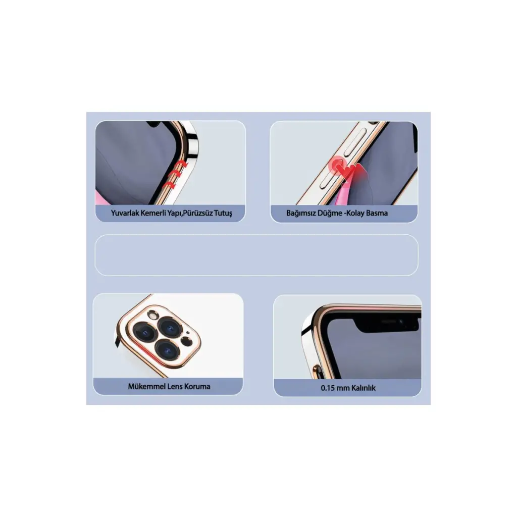 Gold detaylarla zenginleştirilmiş kenar hatları cihazınıza zarif bir dokunuş katar