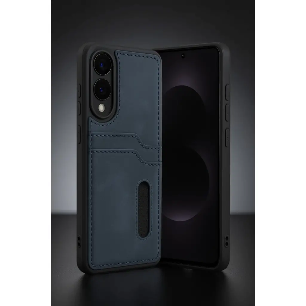 Samsung Galaxy S25 Edge Sara Kartvizitli Deri Kılıf - Taba