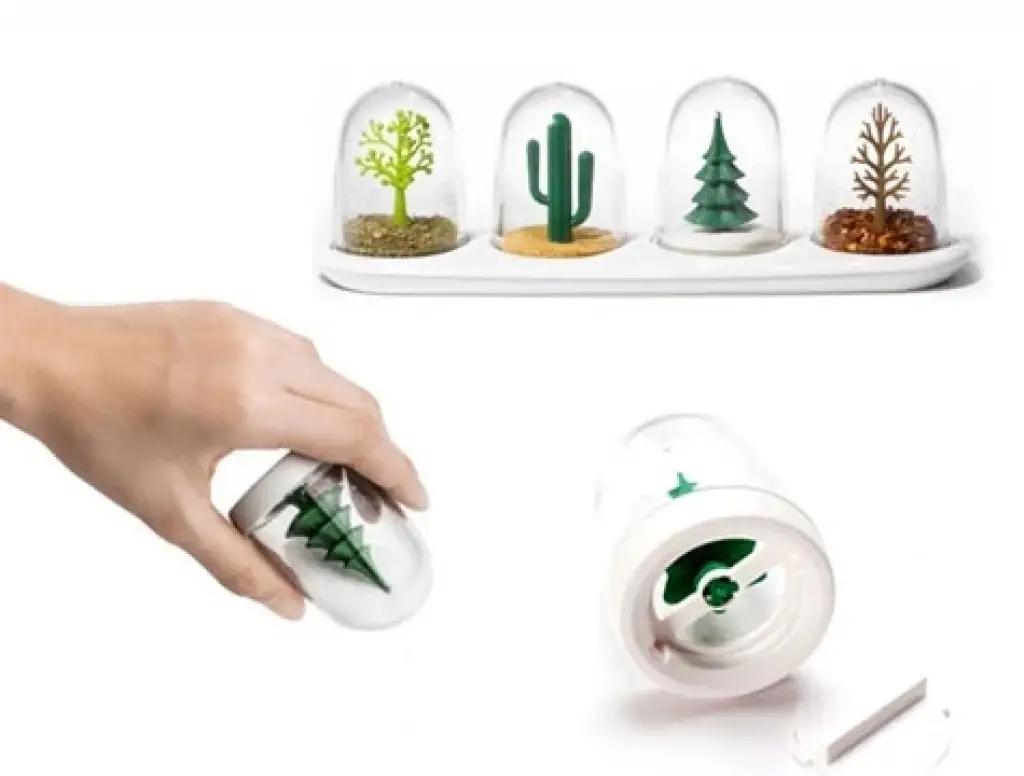 4 mevsimi sofranızda yaşatan harika bir baharatlık. Her birinin içinde uygun mevsime göre ağaç figürleri bulunur ve uygun baharat kullanıldığında gerçekçi bir görüntü elde edilebilir