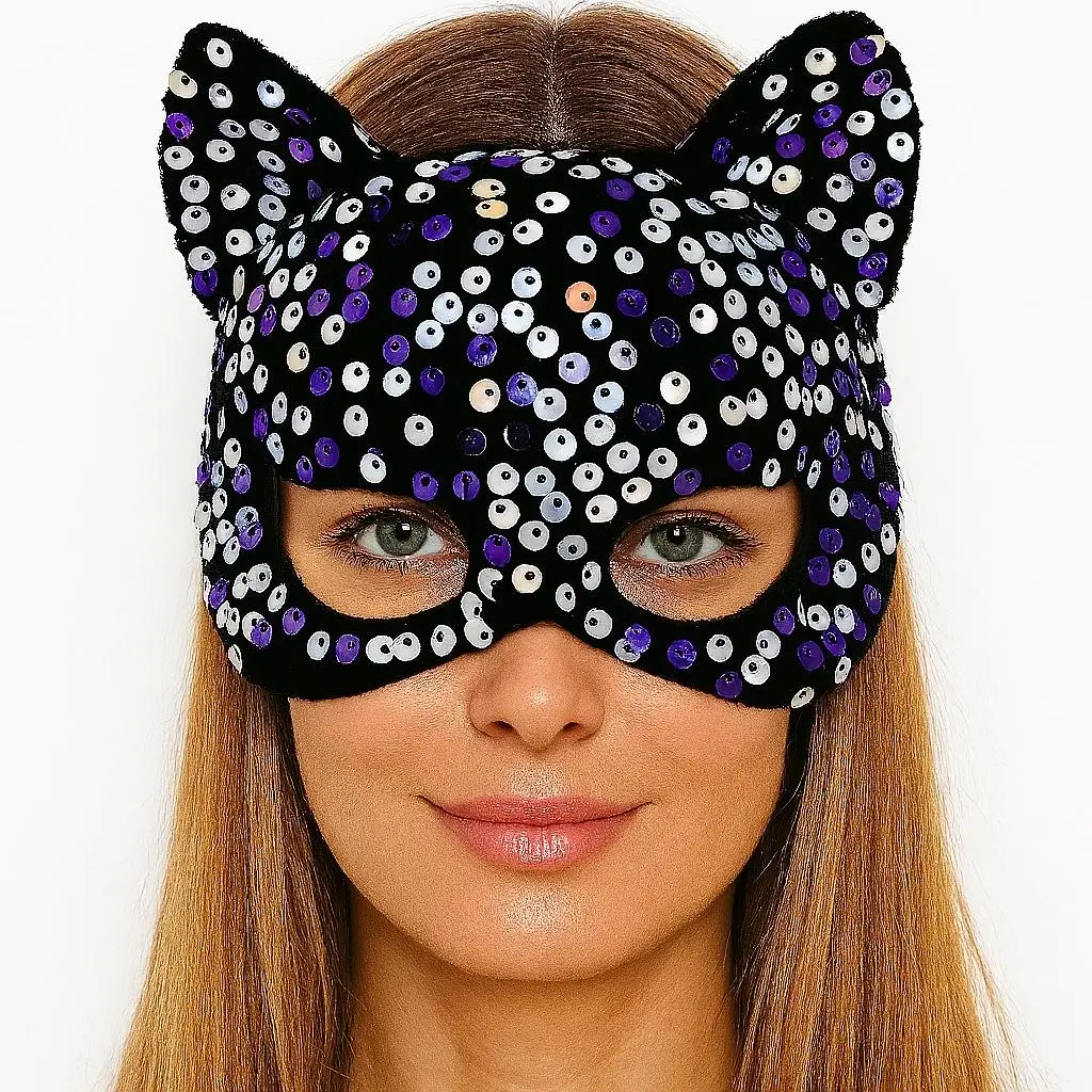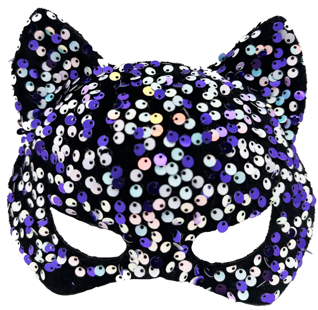 Ürün Adı: Siyah Kadife Kumaş Üzerine Mor Beyaz Payetli Pullu Parti Maskesi