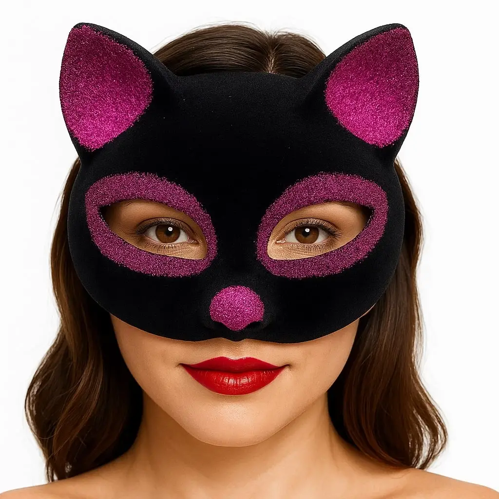 Siyah Renk Fuşya Simli Süet Kedi Maskesi ile Sevimli ve Eğlenceli Bir Görünüm Oluşturun