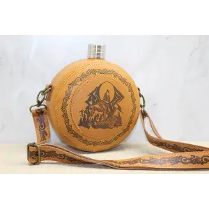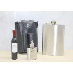 Deri Kılıflı Shot Bardaklı Matara Alk3913