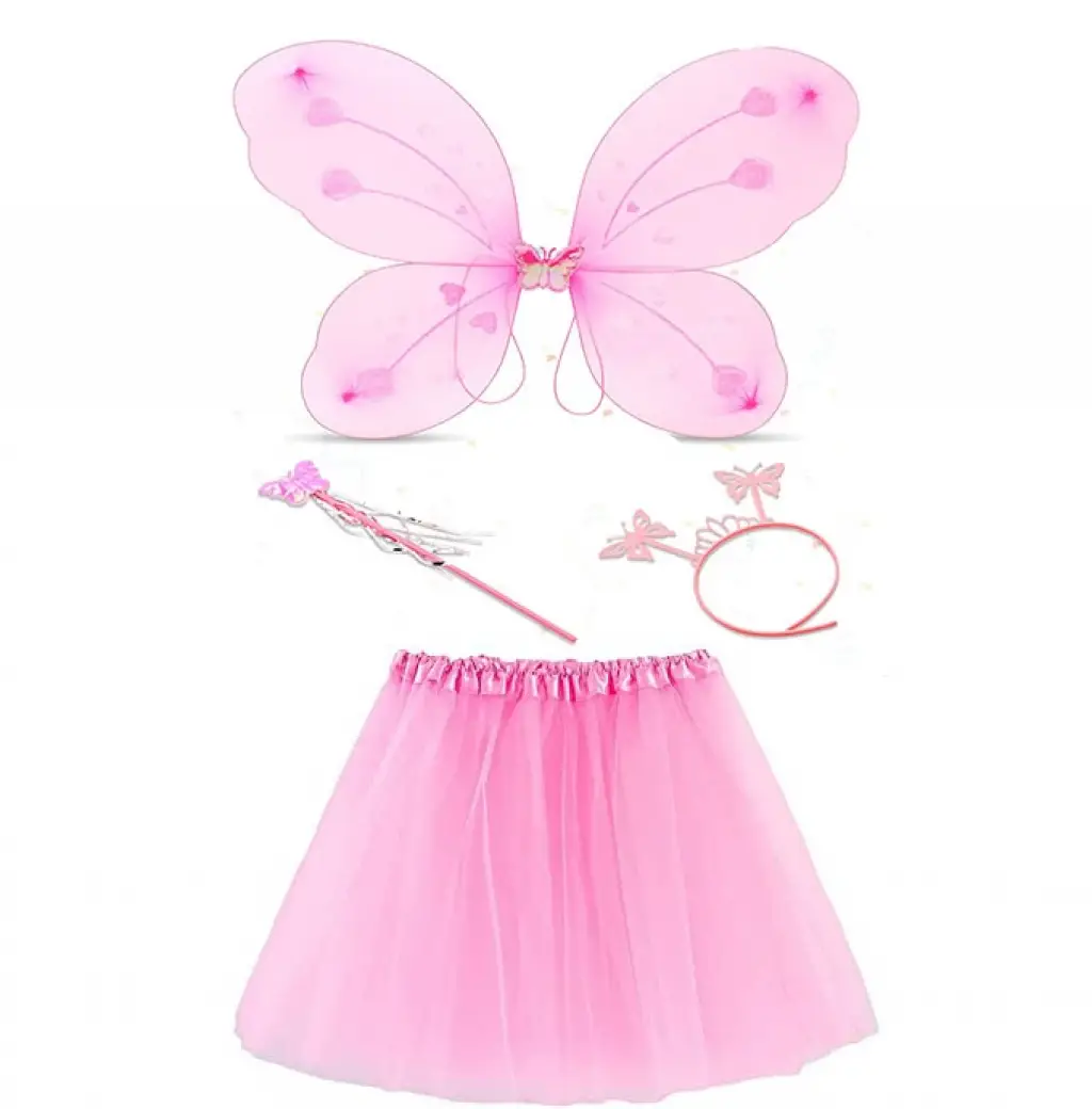 Toz Pembe Kelebek Kostümü - Toz Pembe Kelebek Kostüm Aksesuar Seti 4 Parça