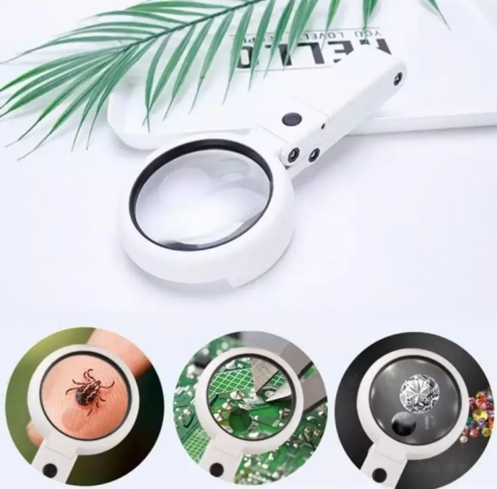 3. Katlanmış el ve katlanmış elücretsiz 2in1 büyüteç ile 90mm lens 3.5X büyütme ve 10X büyütme için 19mm lens.