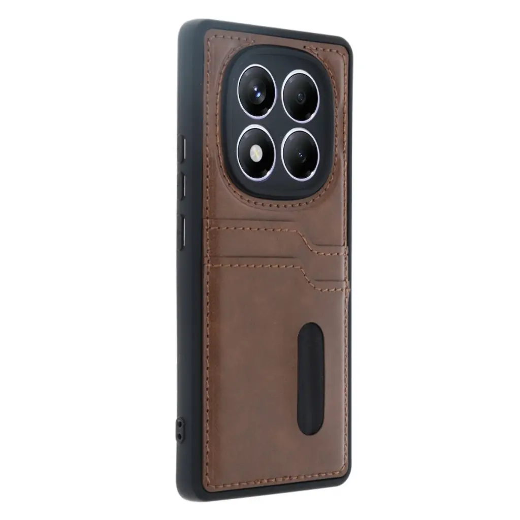 Xiaomi Redmi Note 14 Pro 4g Kılıf Sara Kartvizitli Deri Kılıf - Taba